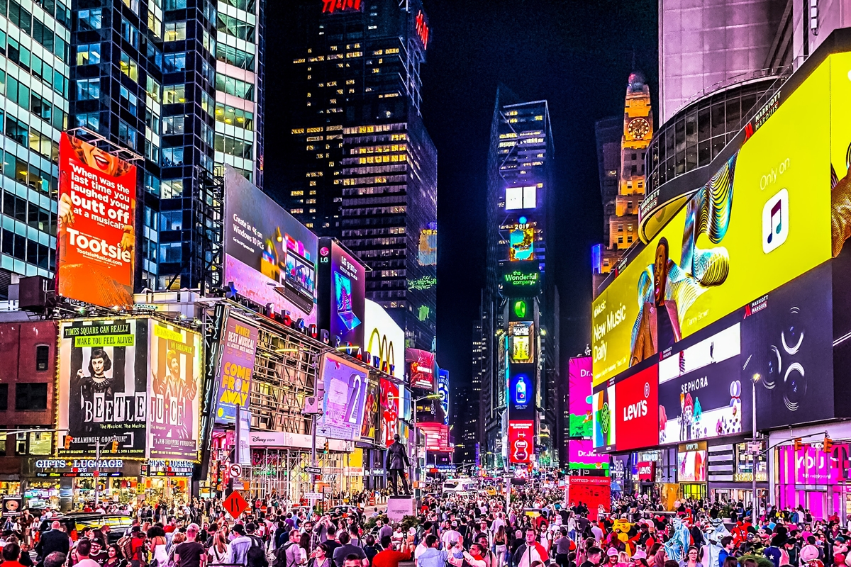 Times Square, located at the junction of Broadway and Seventh Avenue, is one of the most famous commercial and entertainment hubs in the world. Known for its neon lights, massive electronic billboards, and Broadway theaters, Times Square attracts millions of visitors annually. The square is often referred to as "The Cross-roads of the World" and is famous for hosting New Year’s Eve celebrations. It is a symbol of the energy and dynamism of New York City, offering a wide range of entertainment, dining, and shopping experiences. Times Square truly captures the essence of NYC’s vibrant atmosphere.